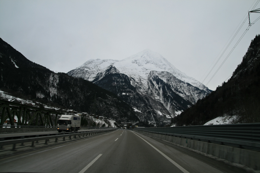 Pod zadaszonym przejściem granicznym z Włochami zostajemy na chwilę zatrzymani do kotroli, celnicy tylko sprawdzają dokumenty