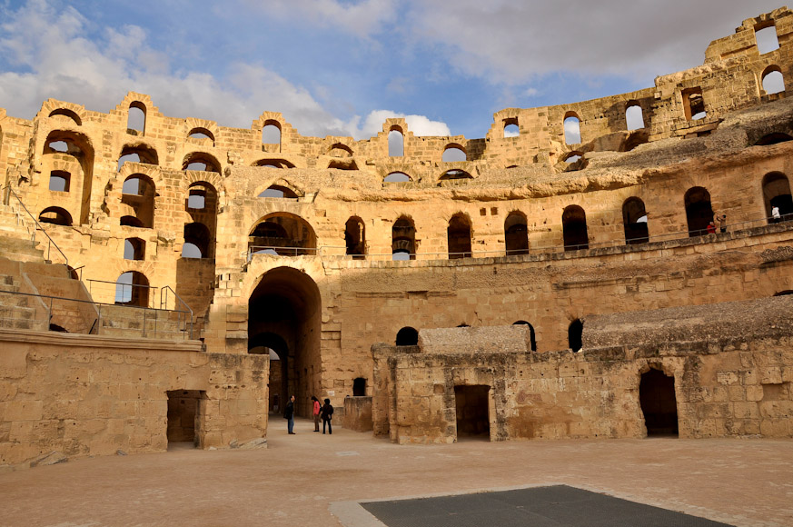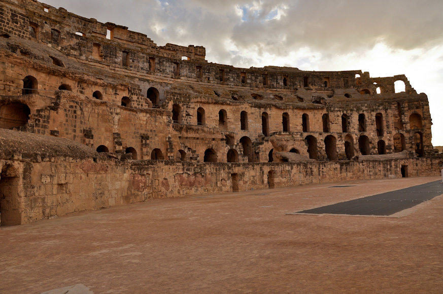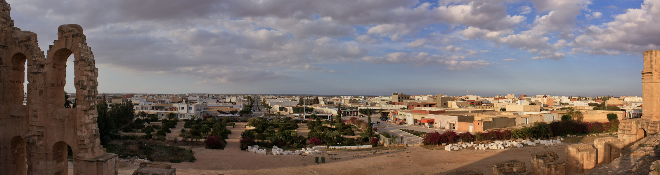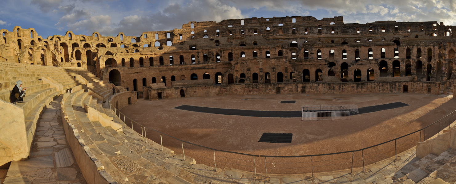 W przeciwieństwie do większości tego rodzaju konstrukcji, amfiteatr leży na otwartej przestrzeni i można podziwiać panoramę El-Jem