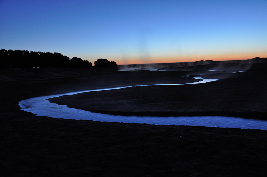 Szumi tylko spływająca na pustynię gorąca woda źródeł Ksar Ghilane