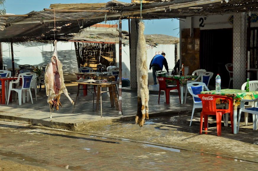 Tu bardzo popularny widok przy drogach, czyli grill-bary z wiszącą na hakach baraniną