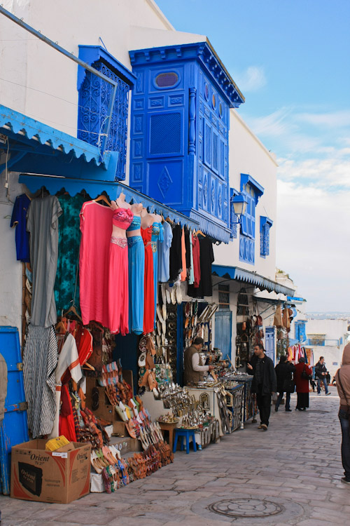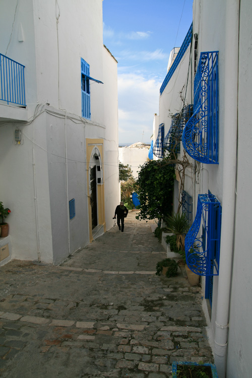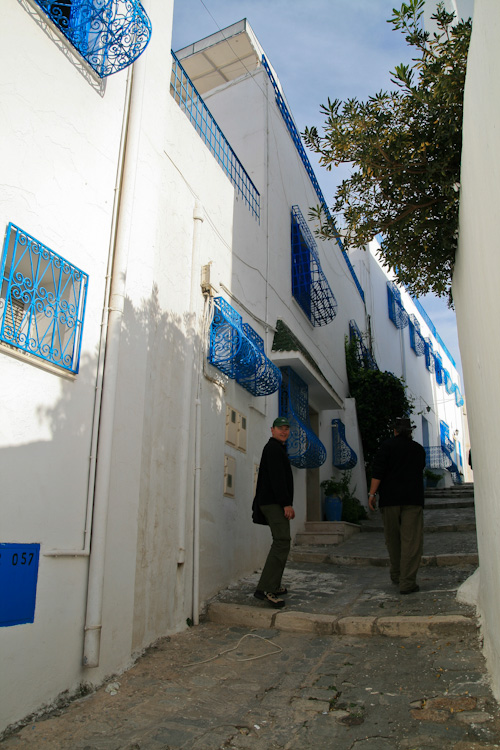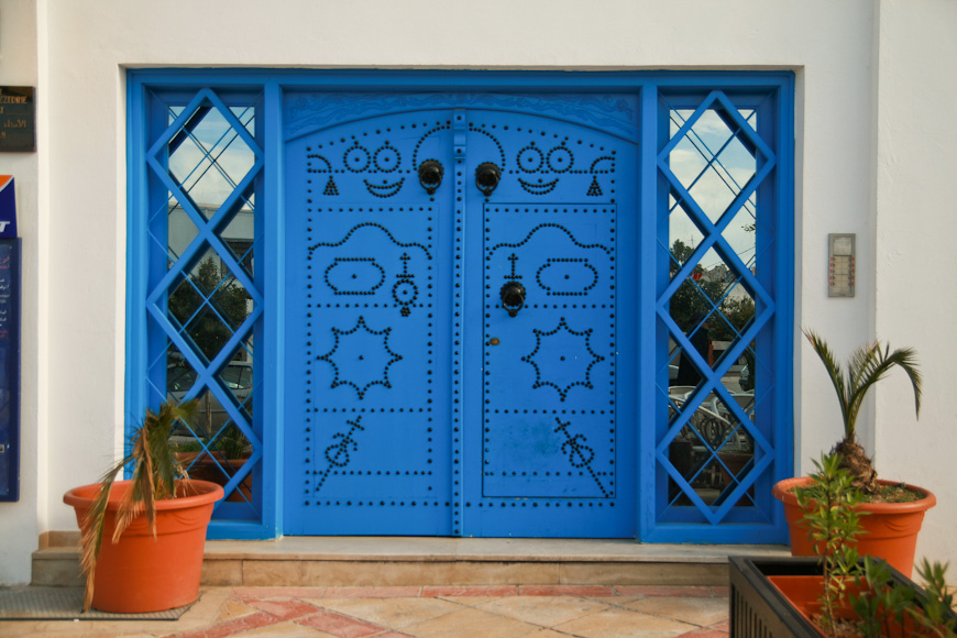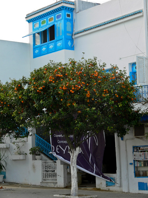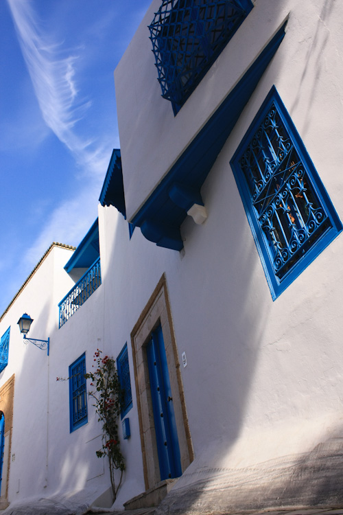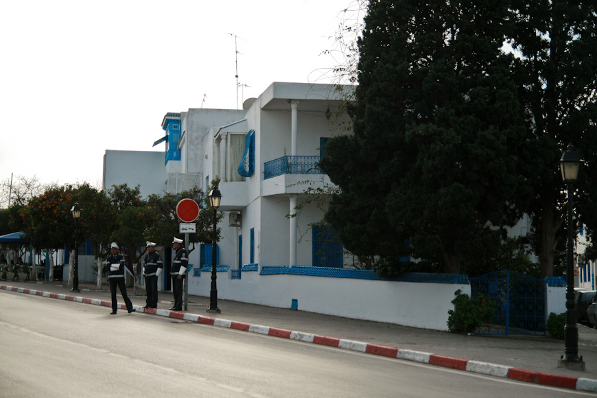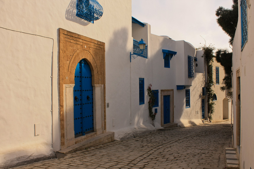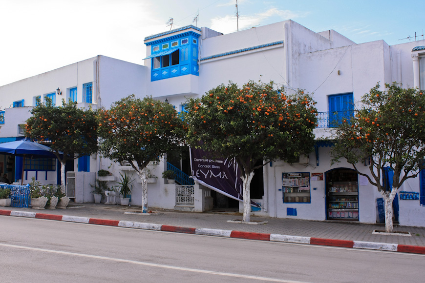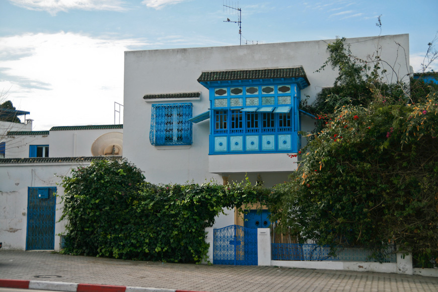 Zwyczaj malowania domów na biało z elementami niebieskiego wprowadził francuski baron Rodolphe d'Erlanger około 1920r.