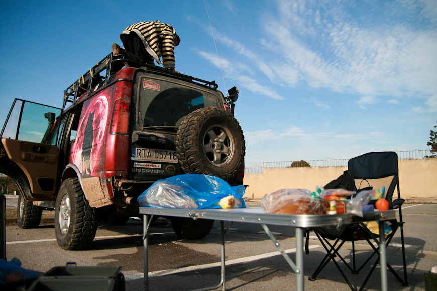Śniadanie zjadamy już na parkingu przed starówką Sidi Bou Said