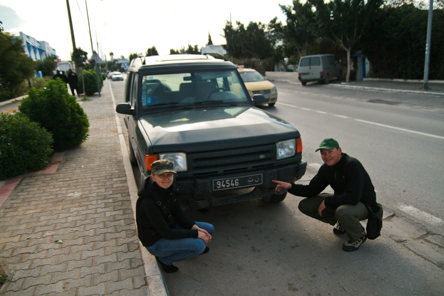 Przy ulicy zaparkowany Land Rover na arabskich blachach, oczywiście musimy się z nim sfotografować