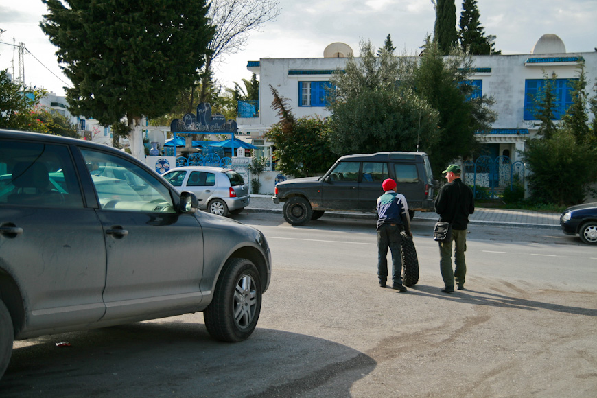 Na przedmieściach znajdujemy wulkanizatora i naprawiamy nasze przebite w ostatnich dniach koło