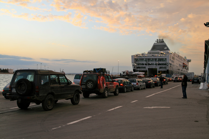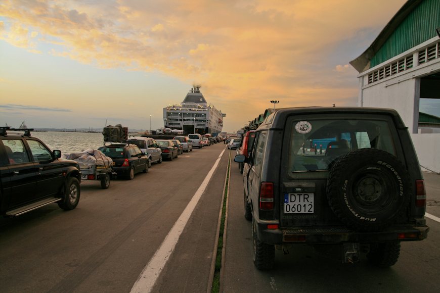 O zachodzie słońca stoimy już przed rampą prowadzącą na prom