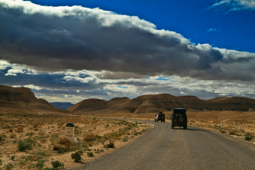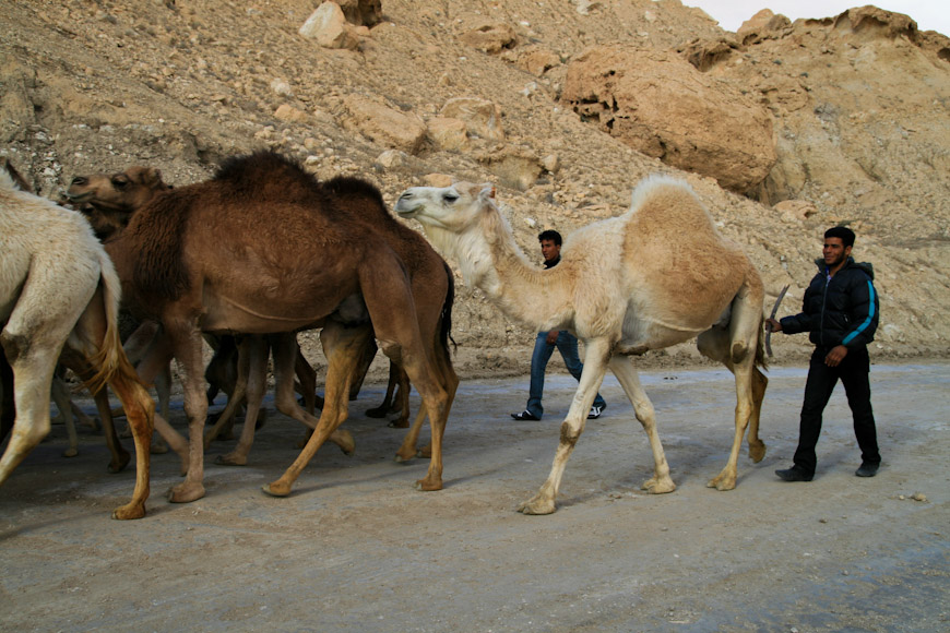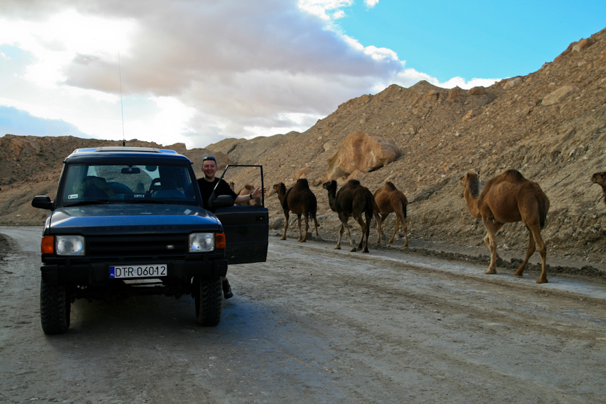 Po kilku minutach jazdy, nagle drogą para Tunezyjczyków przepędzała wielkie stado wielbłądów