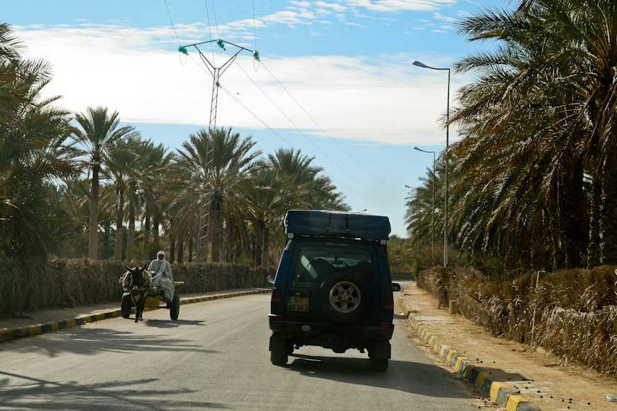 Ruszamy przez miasto Douz na zachód. Ta mała osada jest obecnie znanym ośrodkiem turystycznym i nosi również nazwę "Brama Sahary", bo