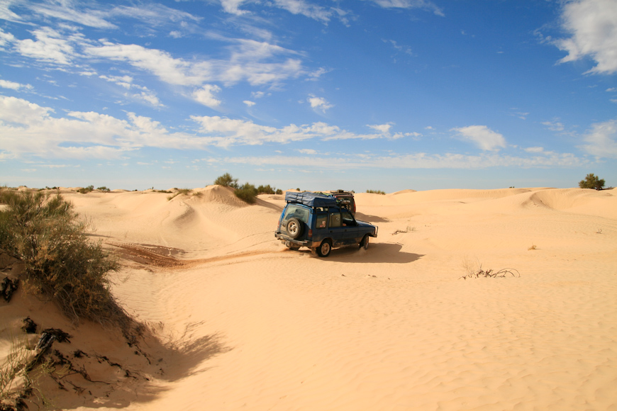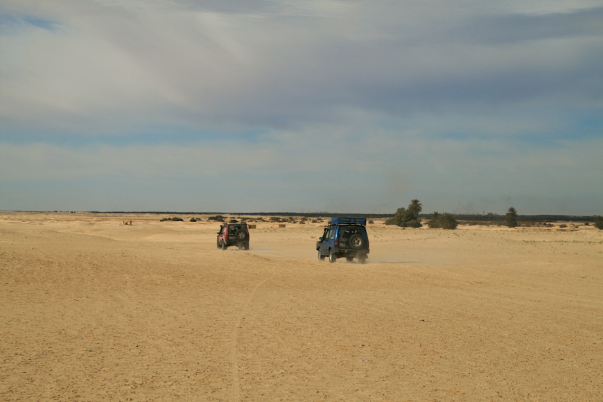 Nocą staramy się omijać piaski i pokonać trasę do Douz po równinach