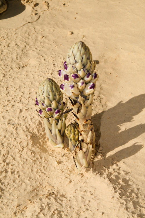 Przez piasek przebijają się ciekawe roślinki