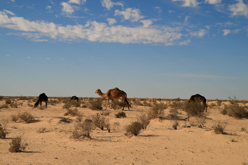Trafiamy na rozległe szaroziemy, gdzie lubią paść się wielbłądy podskubujące karłowatą roślinność