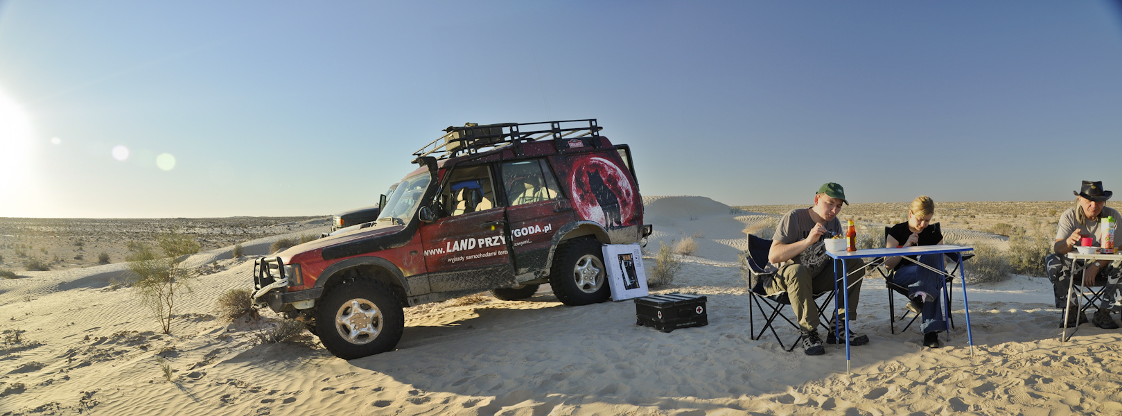 Jest już późne popołudnie i szukamy jakiejś płaskiej wydmy, gdzie moglibyśmy rozstawić stoliki i zjeść obiad