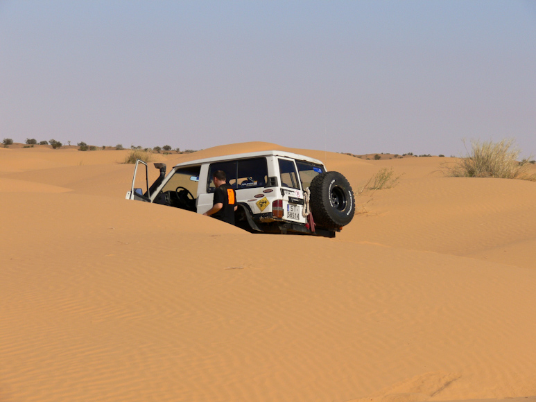 jego auto się przewróci. Razem z Grzegorzem postanawiają objechać wydmę i ustalamy miejsce spotkania już w oazie Ksar Ghilane.